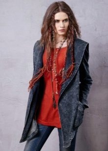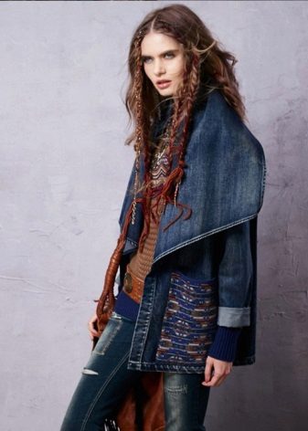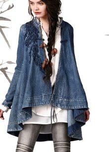 A denim cloak is a universal thing of a women's wardrobe. It will be a good addition to a stylish bow in any style.