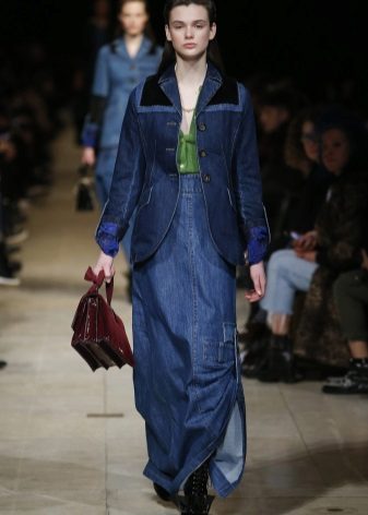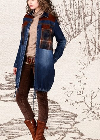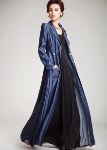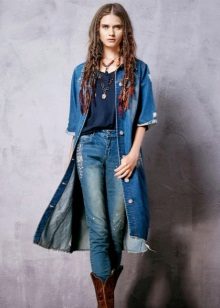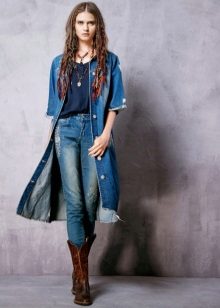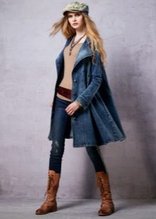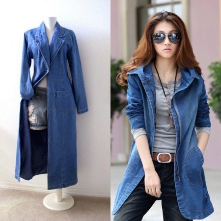 Many stylists recommend wearing a long denim coat, which will reach the ankles. This length gives the image of femininity, makes the image interesting and original. To emphasize the waistline, just put on an exquisite belt to match the cloak with a spectacular plaque.