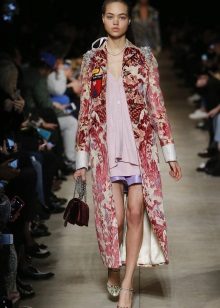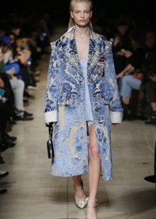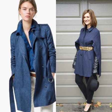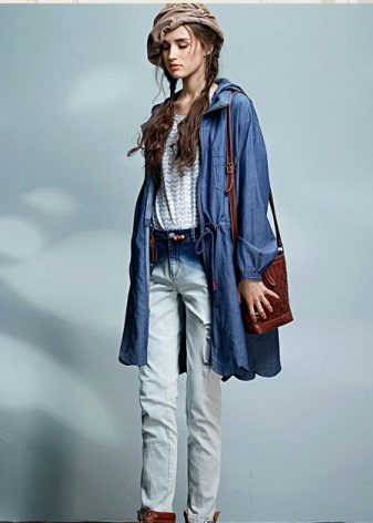 Today, designers offer luxurious models of denim cloaks with light scuffs, or decorate them with a variety of decorative elements. A raincoat with a lace collar or floral print is ideal for embodying a romantic bow.