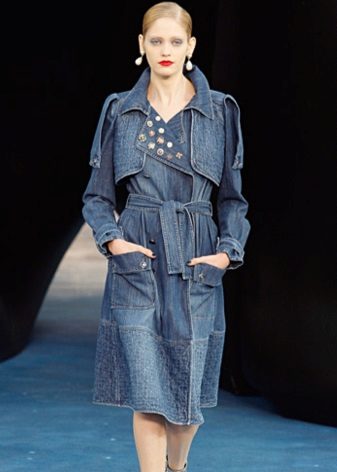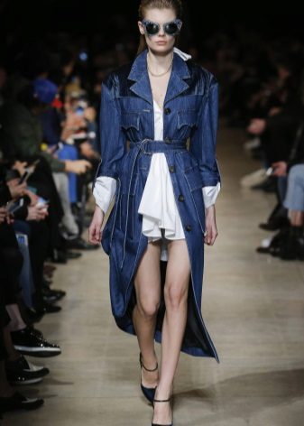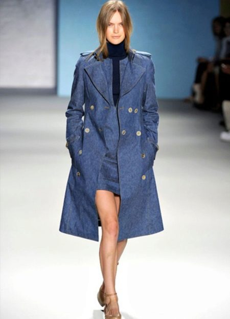 Denim raincoats of medium length and short sleeves are in fashion today. Although if you prefer a long model, then you can safely replenish your wardrobe. But keep in mind that this option is suitable only for tall beauties. Girls of short stature should pay attention to raincoats to the knee or slightly lower. A successful addition will be the belt.