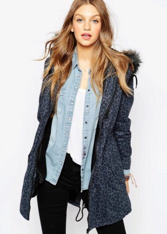 Denim can also be combined with items decorated with a leopard print. Although at first glance this combination seems unprofitable, you just have to put on a denim coat with a leopard dress, as the image takes on charm and charm.