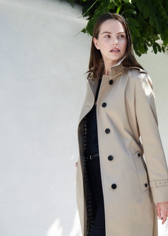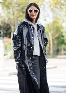 The right color choice is the foundation of your image. The basic shades are the same: blue, black, beige and sand. Bright girls should not choose a black cloak, as it can overload your image. For ladies who are not afraid of flashy images, you can choose a white cloak or khaki mac.Trendy novelties of past seasons are patent leather raincoats, with print or perforation. Designers add large buttons, zippers, a creative collar to the model.