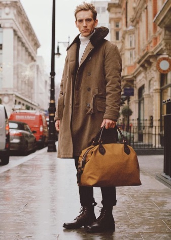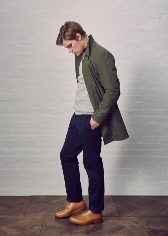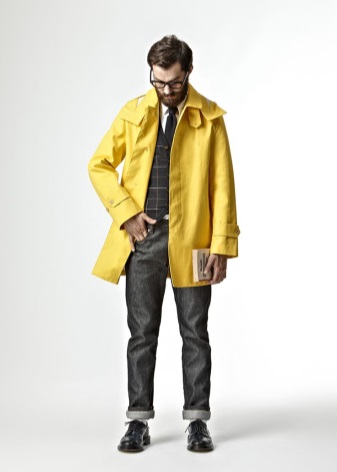 On a hot day, the Mac is best worn wide open. In case of bad weather - fasten the raincoat on all buttons and raise the collar. Classic men's colors are black, blue and beige. It’s best not to wear a blue mac with a black suit. In this combination, you will look ridiculous and overloaded. It is best to wear a raincoat in autumn or spring. With a cloak, sweaters with a high neck or with a V-neck are perfectly combined. The correct raincoat should be 10-15 cm above the knee.