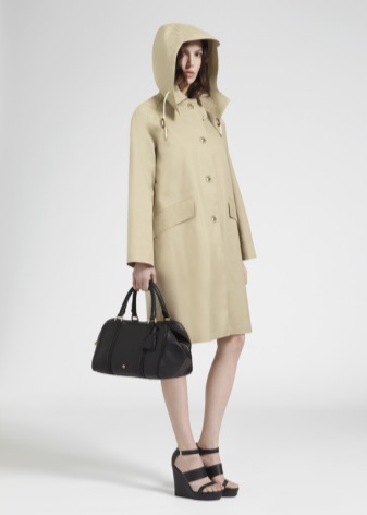 ASOS offers fashionistas a black and white mac raincoat with a hood and panda-like ears. Such an original cloak can be worn in casual style. For the urban image, this company presents a long black cloak with a belt and cuts on the sleeves. Such a mac will be combined with boots, loose shirts, wide jeans and even hats.