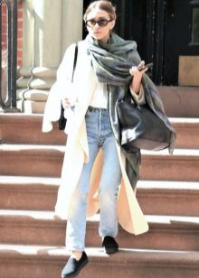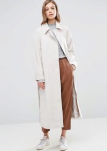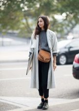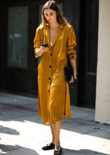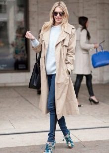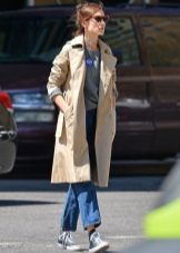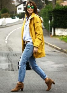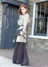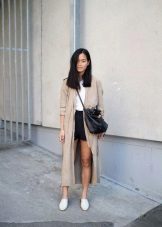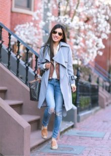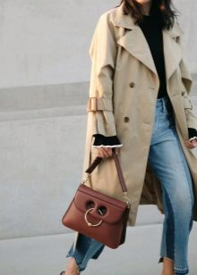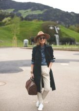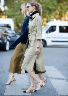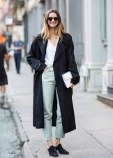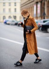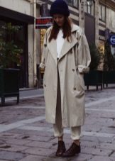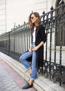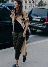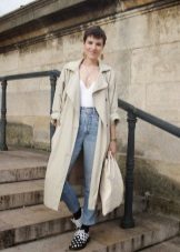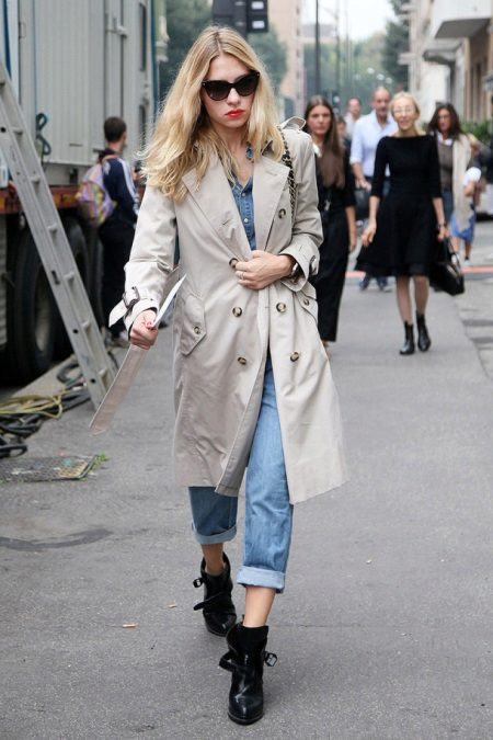 If you prefer low-speed shoes, wear a raincoat with tight trousers or jeans. In tandem, they will look most harmonious. You can also try on not very wide boyfriend pants or mom-jeans.