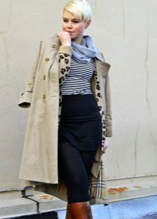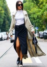 Give preference to a laconic style, a shortened length, maximum to the knee, and a fashionable calm color. It can be beige, taup, wine, black and others. Such a model will fit perfectly into any urban look.