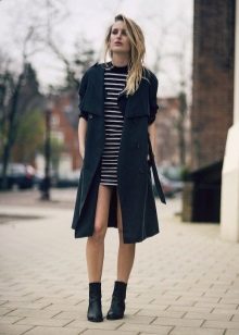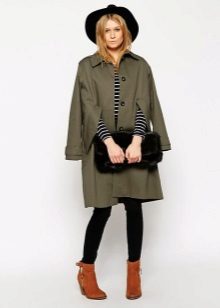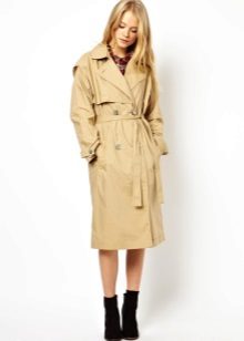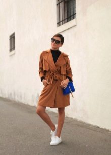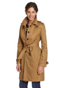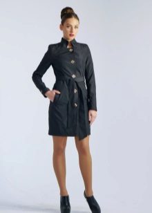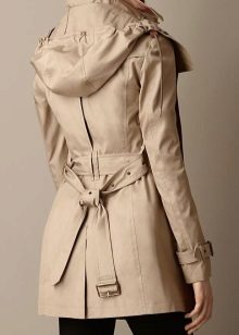 Shortened raincoats reach the middle of the thigh. As a rule, they are characterized by a straight cut, so they can be worn loose, unfastened, or tie a belt at the waist. This style allows you to demonstrate a figure and slender legs, so the model is in demand among young girls.