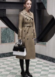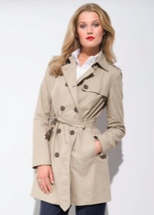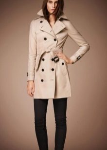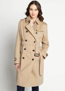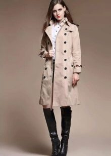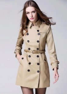 Its distinctive features are double-breasted cut and the use of waterproof material. On the classic product, there are 10 buttons on the front, and each pocket is fastened with a button. On the belt and sleeves there are straps with buckles, on many models you can find shoulder straps. Classic models are characterized by beige colors.
