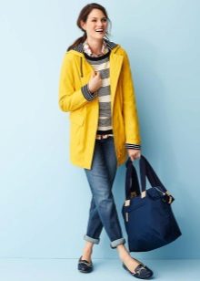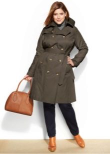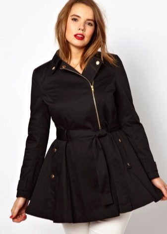 Full girls should choose raincoats that distract attention from existing flaws. For example, it could be a knee-length model with a high waistline. It allows you to emphasize the chest, hiding the volume at the waist and hips.