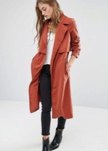 Leather raincoats are now at the peak of popularity, they delight with a variety of models, styles and colors. You can wear it absolutely with any clothes, whether it be a skirt, jeans or trousers. The leather coat does not get wet and looks expensive, stylish and fashionable. Its only drawback is its high cost.