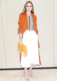 - Going on a date? Prefer a pastel-colored lace dress, high-heeled sandals, and a classic knee-length cloak. The image will complement a bright clutch and sunglasses.