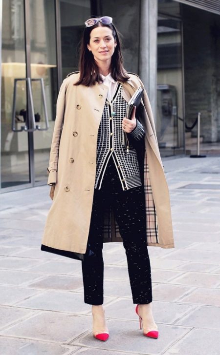 Long raincoats are suitable only for tall girls. Wear it best with tight cropped trousers or jeans, complementing the look with a high heel. Prefer the classic model with a belt at the waist.