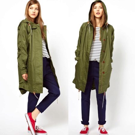 Their distinctive features are simplicity and convenience of cut. The most common length reaches the middle of the thigh, the silhouette itself is soft and comfortable. As a decor on the product itself, only patch pockets are used, the product itself is most often fastened with a zipper.