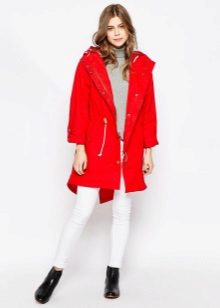 A separate place is occupied by a red cloak. It looks noble and stylish, but it’s not suitable for any way out, but only for formal evening wear or office and business style.