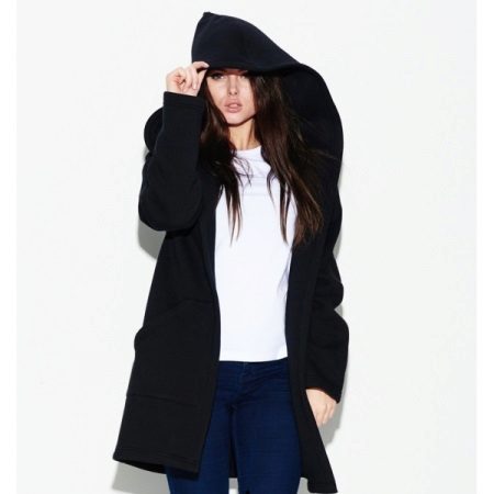 Outwardly, it resembles a simple sweater to the middle of the thigh or slightly lower. However, the fabric used gives out the purpose of the thing. Jacket-cloak fits perfectly with the casual style and goes well with casual clothes, such as jeans.
