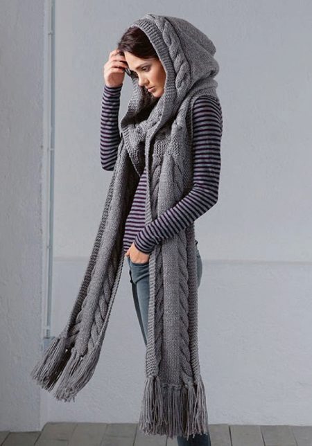 It resembles a cardigan, but the style of the cloak gives out a hood. Knitted raincoat is comfortable, it is cozy, warm, can be worn with absolutely any things.