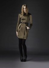 A raincoat - trench coat is made in a straight cut model, with a decorative element in the form of two rows of buttons, on one of which the product can be fastened. In addition, the product has a wide belt that emphasizes the waistline.