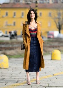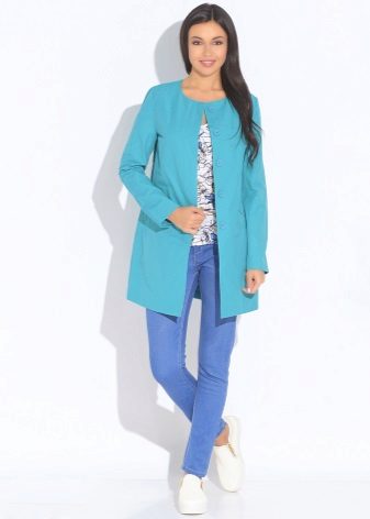 An elongated model, as a rule, reaches the knee, which allows you to wear a raincoat with short skirts or shorts, even in cool weather.