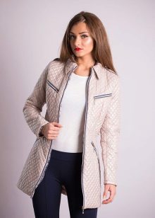 Down-padded coats are made of dense bologna fabric, stuffed with fluff or insulated with a thick layer of synthetic winterizer, which allows you to retain heat inside and does not let cold air under the clothes.