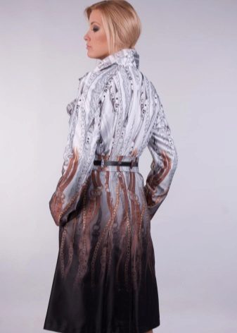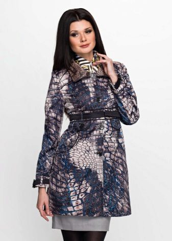 No less popular and colored raincoats, combining several shades. For example, raincoats with floral prints, striped patterns, prints of small and large polka dots, with color stains, as well as prints in the form of geometric shapes or patterns in oriental style.