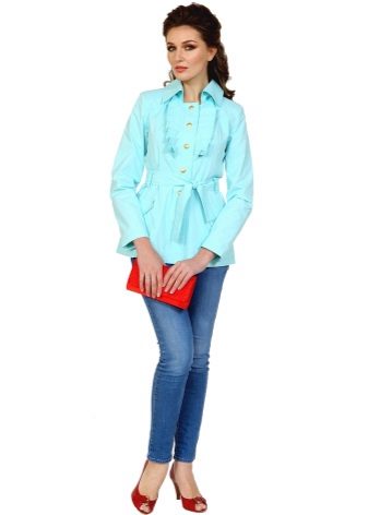 For example, short raincoats look great with trousers, leggings and jeans, and also accept combinations with flat-bottomed shoes in a sporty style.