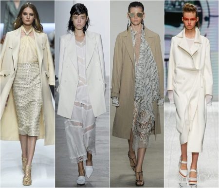 Beige raincoats are most common, since this particular model is the most practical among light products, as well as incredibly feminine.
