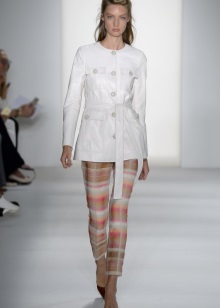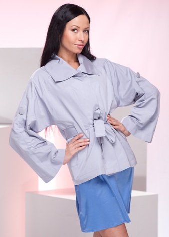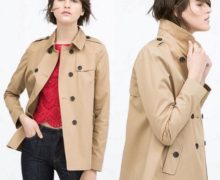 The short cloak and shortened length became very popular. Such models are successfully combined with trousers, skirts, jeans and dresses. The most sought-after length of a female raincoat is the mark to the middle of the thigh.