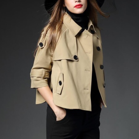 The shortened female cloak was especially fond of young and active girls who prefer minimalism, military or sports style. Such a model may be a length just below the waist, to the waist.