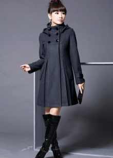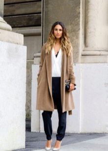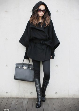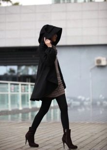 - For dresses, choose a cloak that covers its hem. The belt of such a cloak, straight or flared, accentuates your waist. From shoes, both shoes and boots will be appropriate. If you wear heels, then in this case it will only improve your look.