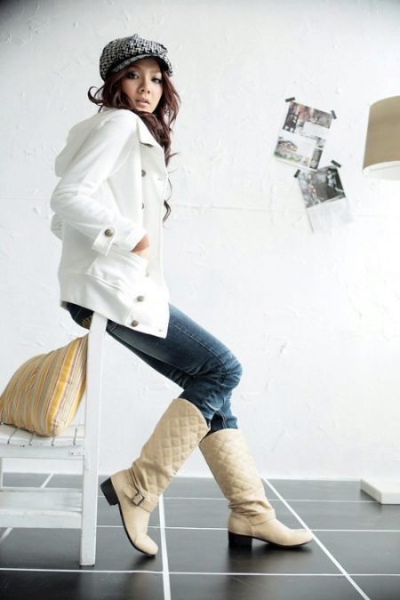 - A short trench coat of almost any color and almost any fabric will suit jeans. The choice of shoes is also yours, it can be both on the heel, preferably straight square, or without. One remark - jeans should be straight or narrowed.