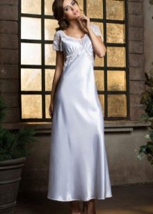 - Properly matched gray maxi dress will not look boring and monotonous if made of fabric with a slight sheen and decorated with lace inserts. Such a presentable and feminine dress will effectively combine with a white bolero, as well as light sandals with thin straps.