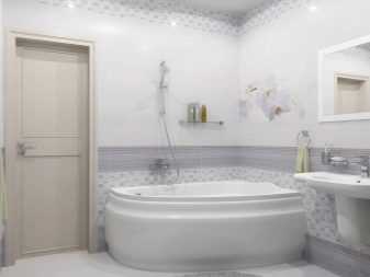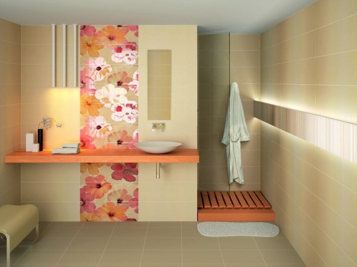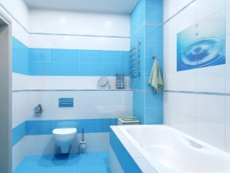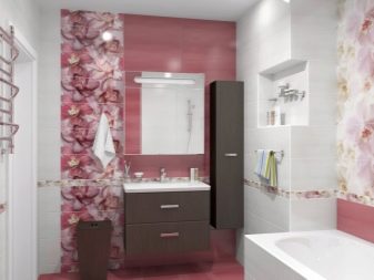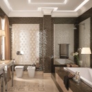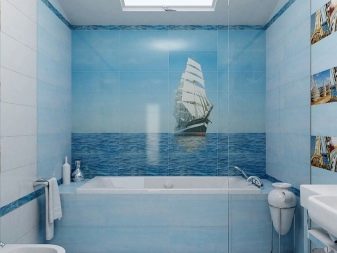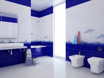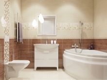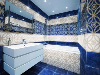 For spacious rooms, there are practically no restrictions on the choice of design. The only thing to consider a small drawing will be invisible and will not manifest itself in all its glory. Small and colorful details are lost against the general background. If you “dress” all the walls in such a pattern, then it will begin to ripple in your eyes. Therefore, when choosing a tile with a pattern or pattern, select its size. It should be proportional to the area of the bathroom.