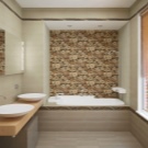 Wall decor can have a vertical orientation. In this case, you can easily zoning the space. For example, to separate the area of the bath itself from the area where the sink with a mirror is located.