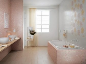 They look very gentle. Given the fact that the bathroom is quite an intimate space, such a design will be in perfect harmony with the direct purpose of the room. Besides, light colors always visually increase the area. If your bathroom cannot boast of large dimensions, then give preference to this particular color scheme.