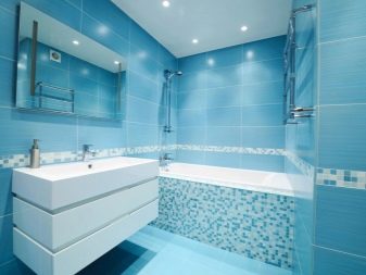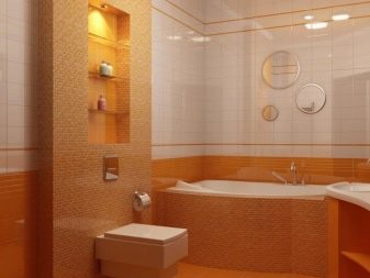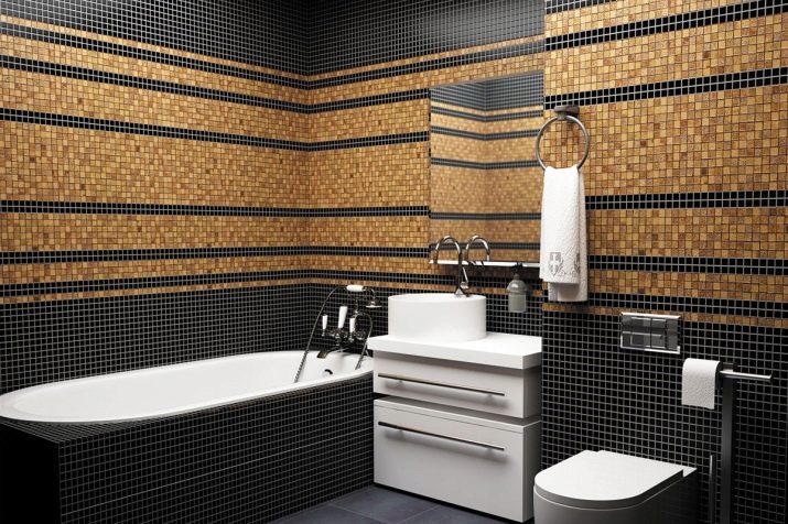 Mosaic can decorate any bathroom. But you must be careful with her. If you go too far, then you will certainly begin to ripple in your eyes. As a color accent, she manifests herself as well as possible.