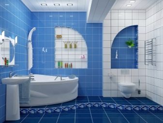 Blue has an infinitely many shades. And each of them has its own character. Deep dark blue is associated with respectability and confidence, a saturated shade causes a lot of positive emotions, muted blue shades suggest philosophical thoughts. This color refers to the dark gamut, and therefore you should not use it in large quantities if the bathroom itself is modest in size.