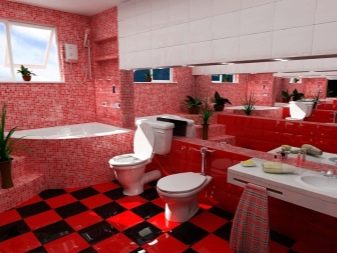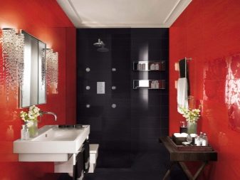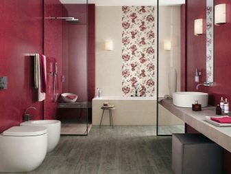 Although these colors refer to the same color scheme, the impression they produce is very different. Red is designed to excite. It is better to use it as accents. In this case, he will prove himself from the best side. A completely red room can cause bewilderment and even rejection. But a calmer burgundy is devoid of such shortcomings. If you think carefully about lighting so that the bathroom does not seem small and dark, then it can be used to the full.