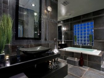 With their use in bathrooms, one must be extremely careful. The abundance of gray and graphite can make the room uncomfortable and cold. Almost any dark visually reduces space, so in small rooms it is better to use it as an additional or accent color.