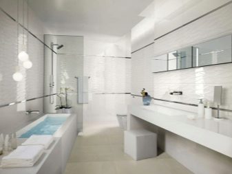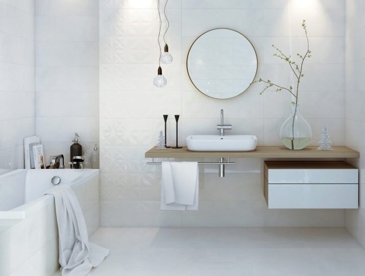 Do not think that a plain white tile will resemble a hospital ward. All sorts of its variations are presented on the market today, which have nothing to do with the above “design”.