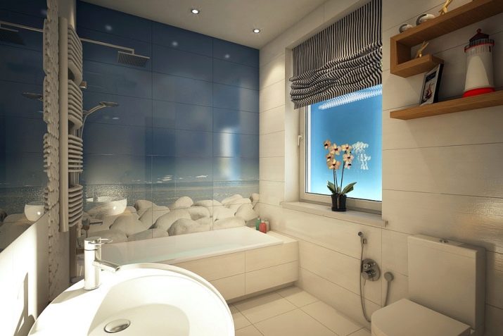 Marine style is one of the most suitable for the bathroom. It is so nice to imagine that you are now not in a stuffy metropolis, but on the shore of the sea, flooded with sun.