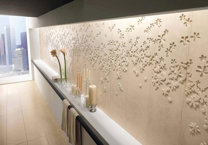 The volume gives the tile great expressiveness. Often you can find monochrome options, the pattern or pattern on which stands out only due to volume, not color. Such options are very interesting.