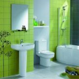 Choosing the shades of the greenest for the bathroom, it is necessary to take into account the difference between the "warm" and "cold" colors. To make a room warmer help not only pistachio and olive, but also khaki and “bottle” color. To achieve visual coolness, tones such as emerald, mint, turquoise and aquamarine. For the design of large areas of the room, it is impractical to use lime saturated with herbal, apple green and similar colors.