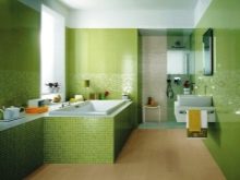 If green tiles are used, the rule should be the use of traditional white plumbing. For the bathroom, tiled coverings of various tones allow not only to set a certain mood. They are also designed to facilitate fitting into certain styles. At the same time, the undoubted advantages of tiles are Its durability and resistance to most cleaning products.