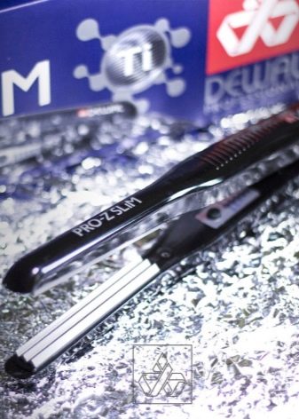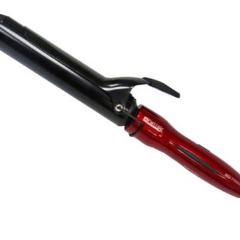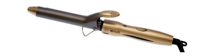 - Dewal Anniversary hair curler 25 mm. The convenient classical curling iron with a clip has a power of 40 W, which makes it possible to create natural elastic curls. Minimal damage to the hair is ensured by a special titanium-tourmaline curling surface, the working temperature is 190 degrees. An interesting design will surely appeal to any girl.