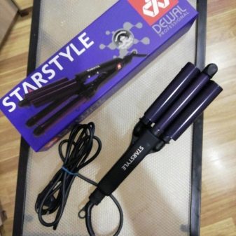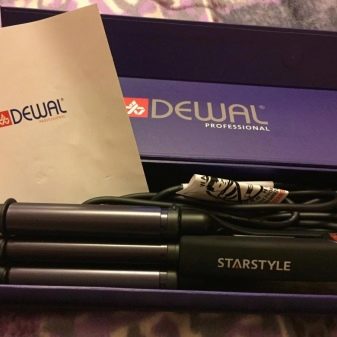 - Nippers for hair triple Dewal Star Style. The cylinders have a titanium coating with tourmaline, which minimizes thermal damage to the hair. The triple design (22, 19 and 22 mm) makes it possible to reduce the time spent on creating persistent curls. The built-in temperature controller allows you to select the desired heating mode (from 60 to 200 degrees) depending on the type and density of hair.