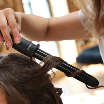 - conical curling iron, makes it possible to create springy curls, like a doll, which when combed create the effect of natural waves;