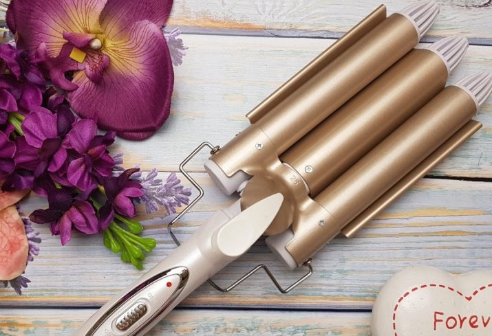 The name speaks for itself. And this product has 3 trunks at once (they can be of different diameters), which are equipped with a strong clamp. When curls are curled, the strand from the root itself is placed on the cylinders and fixed with a clip. If the hair is long, then the procedure is repeated until the length of the curl is over. Curls come out not voluminous, but hold firmly.