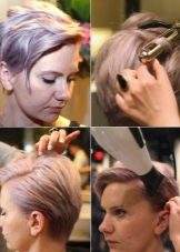For excessively short hair, when zones are cut in the temples and lower crown, it is better to wind the curls up. Strands on the parietal zone should be pulled up so that they become perpendicular to the head. You need to wind the curls on the curling iron with the ends inward.