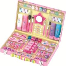 The most reasonable way out is not to prohibit, but to give the birthday girl her own set of children's cosmetics. This solution is completely safe, even if the child pulls the components in his mouth. And most importantly, in the future, the acquired skills will still be useful, so there will be no harm from this.