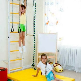 A stunning gift for an active daughter or granddaughter will be sports complex installed in her nursery. As a rule, in addition to the Swedish wall, it is equipped with a rope ladder, rope, trapezoid and rings. Below for safety it is important to place mats. Other interesting options is buying a dance rug, frisbee, twister or a children's version of a dart that does not use sharp darts.